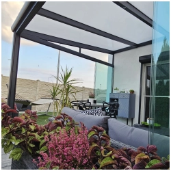 Nasze zadaszenie wykonane jest z aluminium 6063-T6, które jest o 25% mocniejsze od standardowych materiałów, zapewniając długowieczność i odporność na zmienne warunki atmosferyczne. Aluminium jest lekkie, odporne na wilgoć i promieniowanie UV, co ułatwia jego konserwację.
